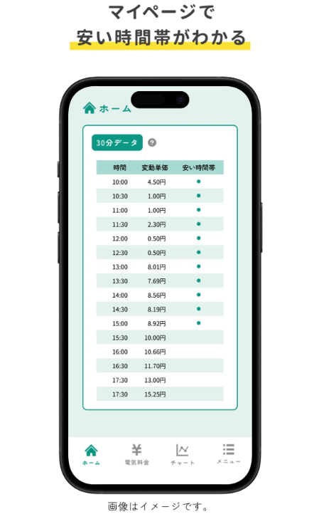 リボンエナジーは良心的な料金設計だけでなく、スマホでも見やすく「安い時間帯」がわかるので電気代の節約もしやすいのが嬉しいポイント!