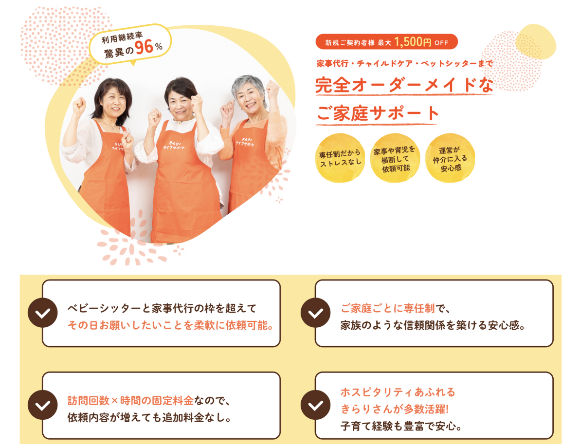 完全オーダー制なので、1回だけのご利用の場合、きらりの良さを十分に感じるのが難しいかもしれません。