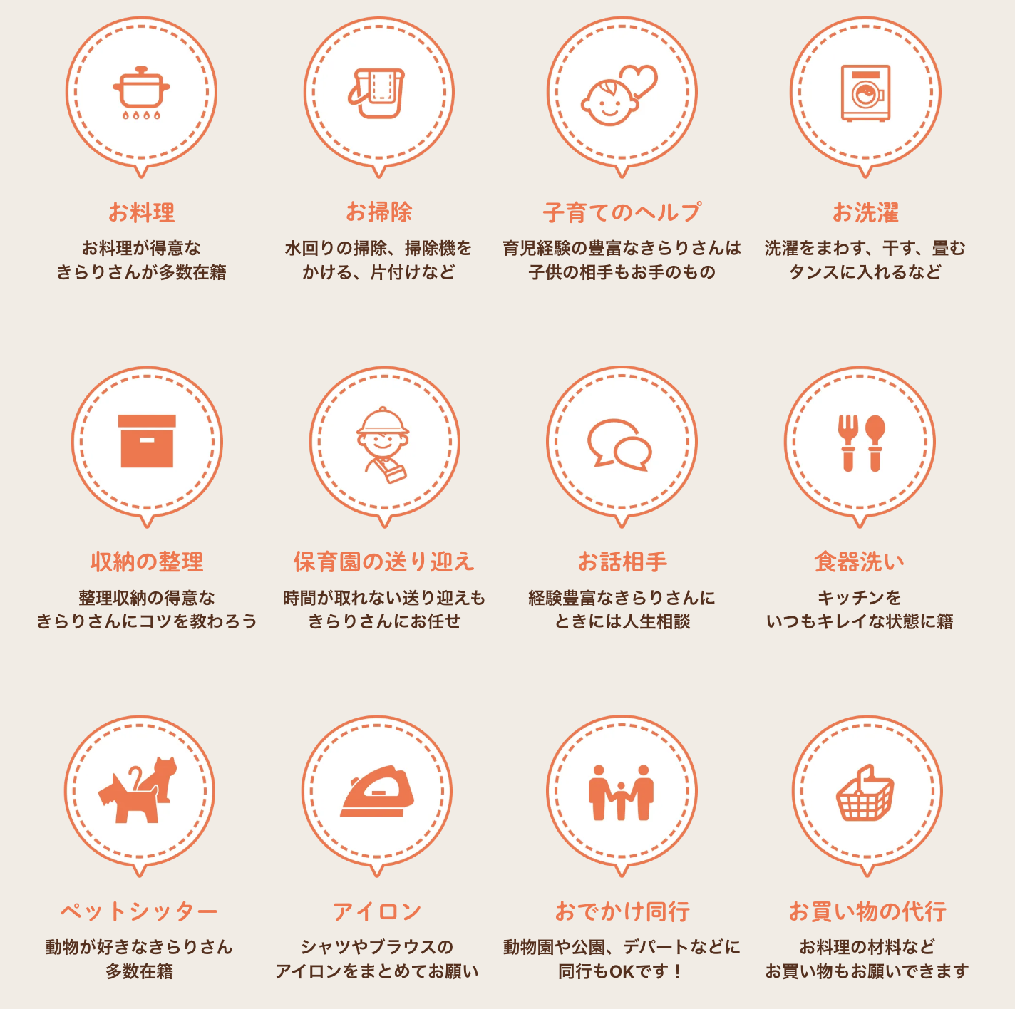 以下のように様々な家事をご自宅オリジナルにアレンジしてくれるので、ほとんどのご家庭でバッチリサポートしてくれますよ。