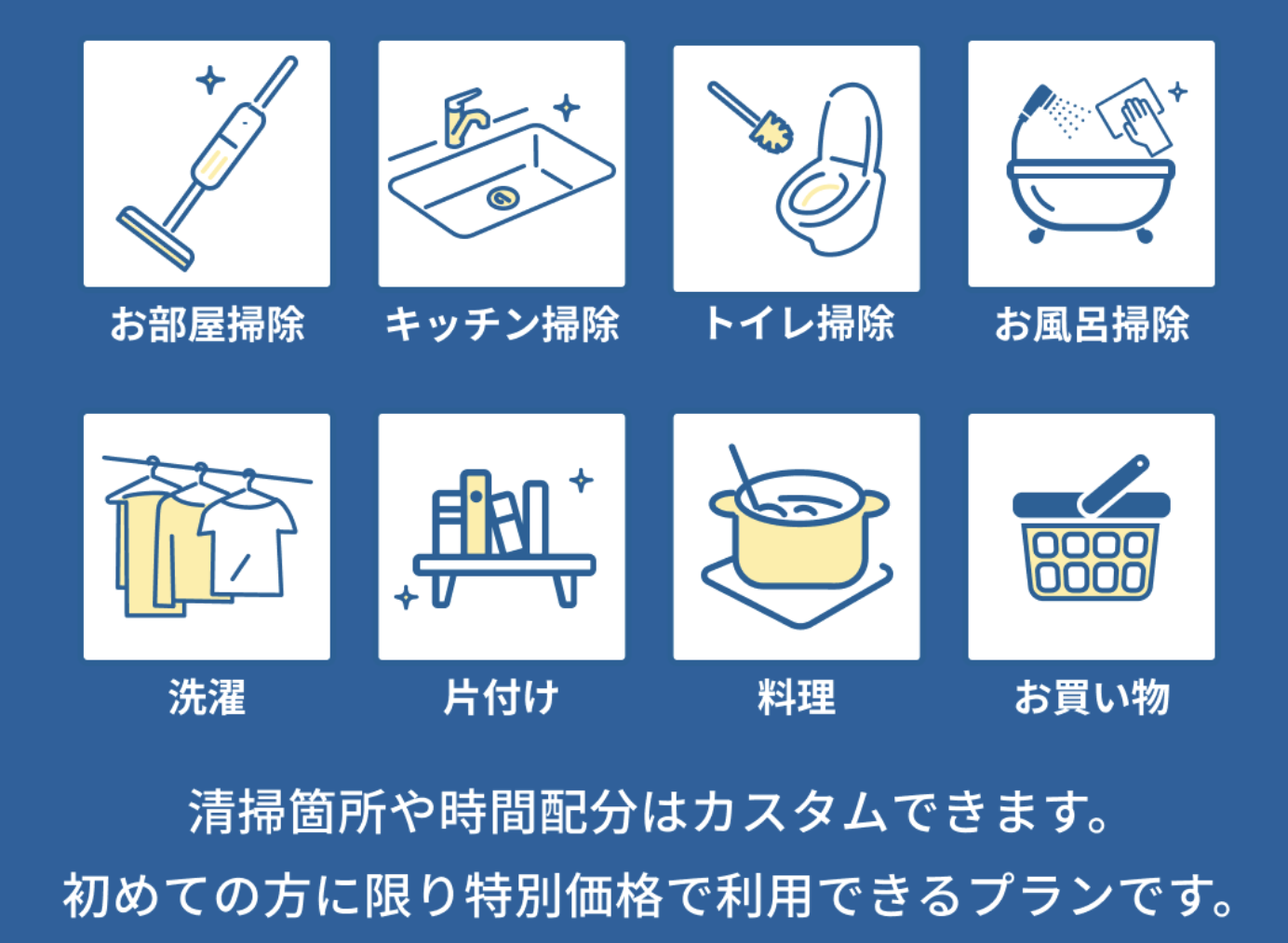 ミニメイド・サービスもプランによりますが、家事内容や時間配分などカスタム可能です。