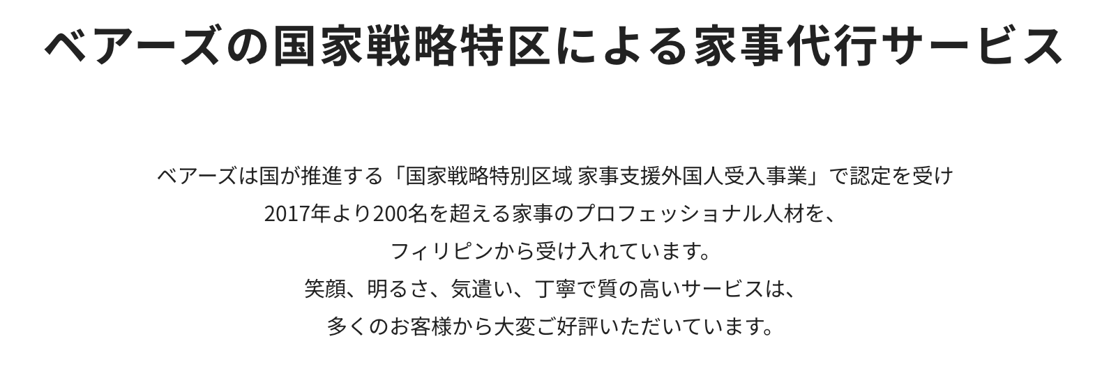 家事大国フィリピンから、しっかりと実習トレーニングを積んだスタッフが対応してくれます。